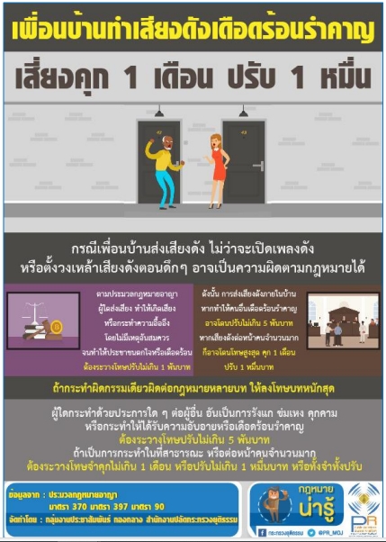 กระทรวงยุติธรรม มีสาระน่ารู้เกี่ยวกับข้อกฎหมายเกี่ยวกับการที่เพื่อนบ้านทำเสียงดังเดือดร้อน