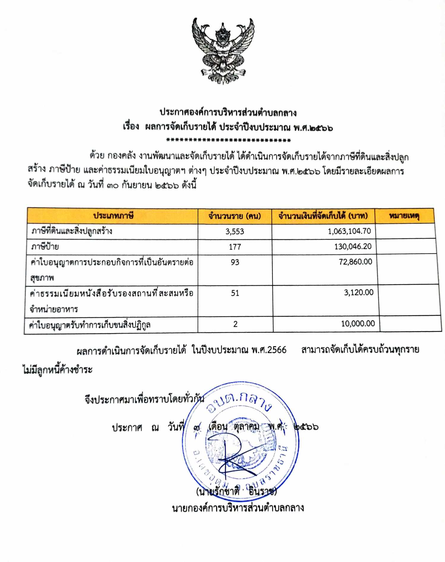 รายงานผลการจัดเก็บรายได้ ประจำปีงบประมาณ พ.ศ.2566