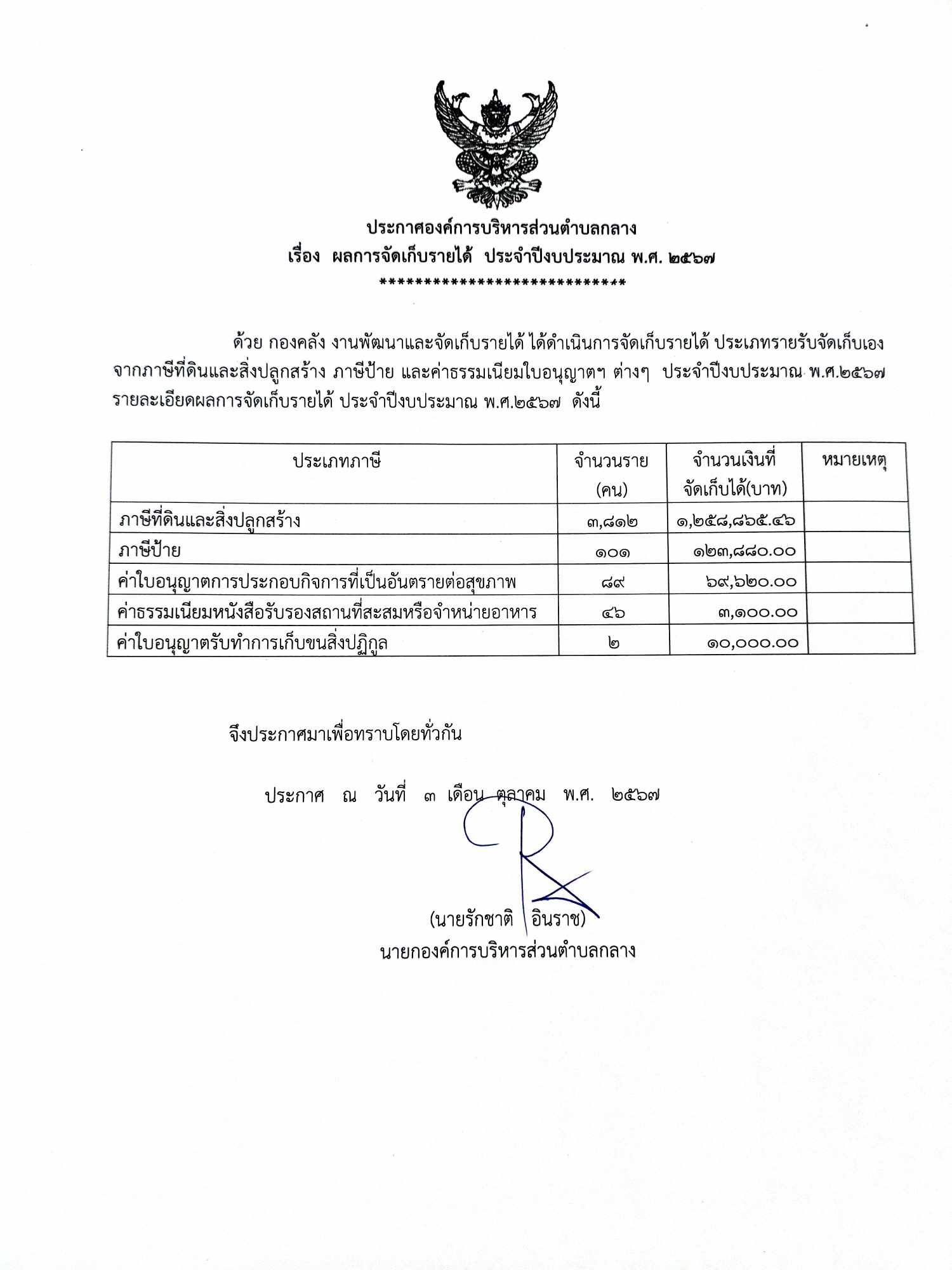 รายงานผลการจัดเก็บรายได้ ประจำปีงบประมาณ พ.ศ.2567