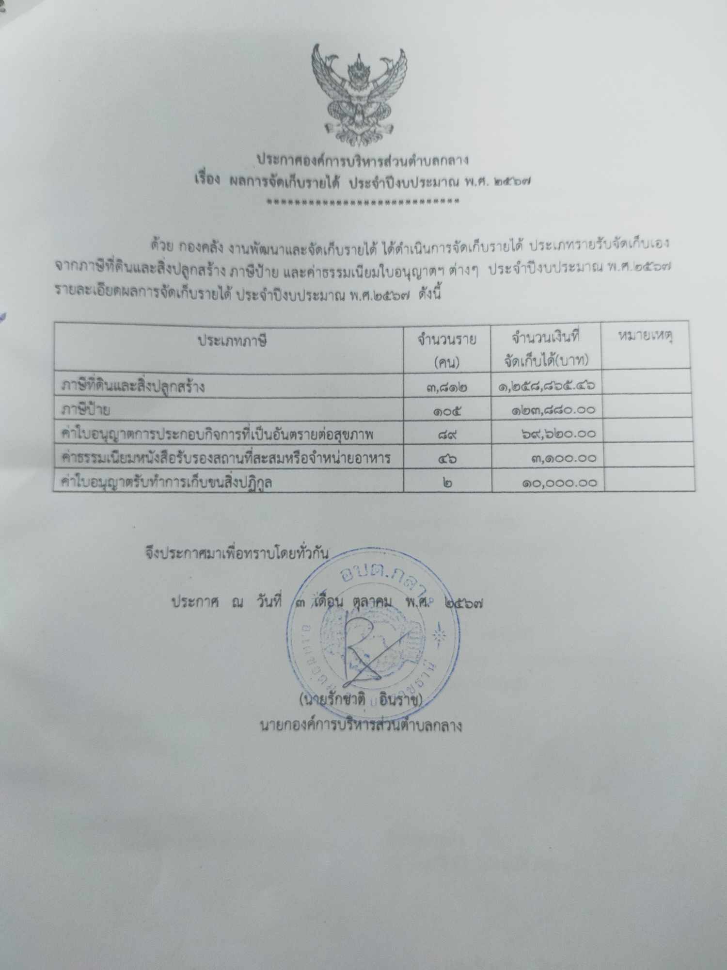 รายงานผลการจัดเก็บรายได้ ประจำปีงบประมาณ พ.ศ.2567