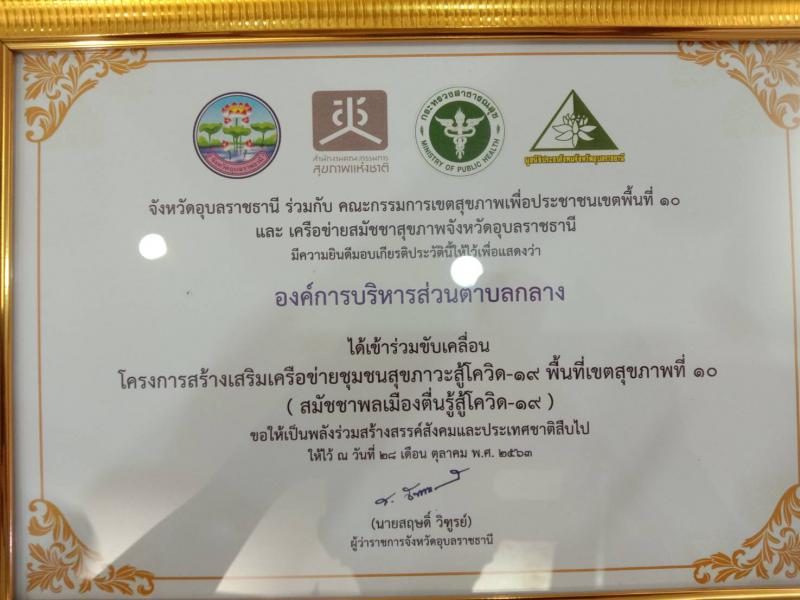 วันอังคารที่ ๓ พฤศจิกายน พ.ศ.๒๕๖๓ องค์การบริหารส่วนตำบลกลาง เข้าร่วมพิธีลงนามประกาศธรรมนูญสุขภาพตำบลและพิธีเชิดชูเกียรติการขับเคลื่อนสมัชชา ตื่นรู้ สู้โควิด-19 อำเภอเดชอุดม "คนเดชอุดม สุขภาพดี มีคุณธรรม" ณ สาธารณสุขอำเภอเดชอุดม จังหวัดอุบลราชธานี (จำนวน 2 ภาพ)