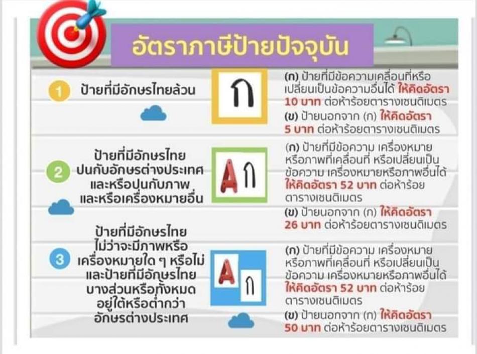 อัตราภาษีป้ายปัจจุบัน [19 พฤศจิกายน 2564]